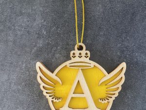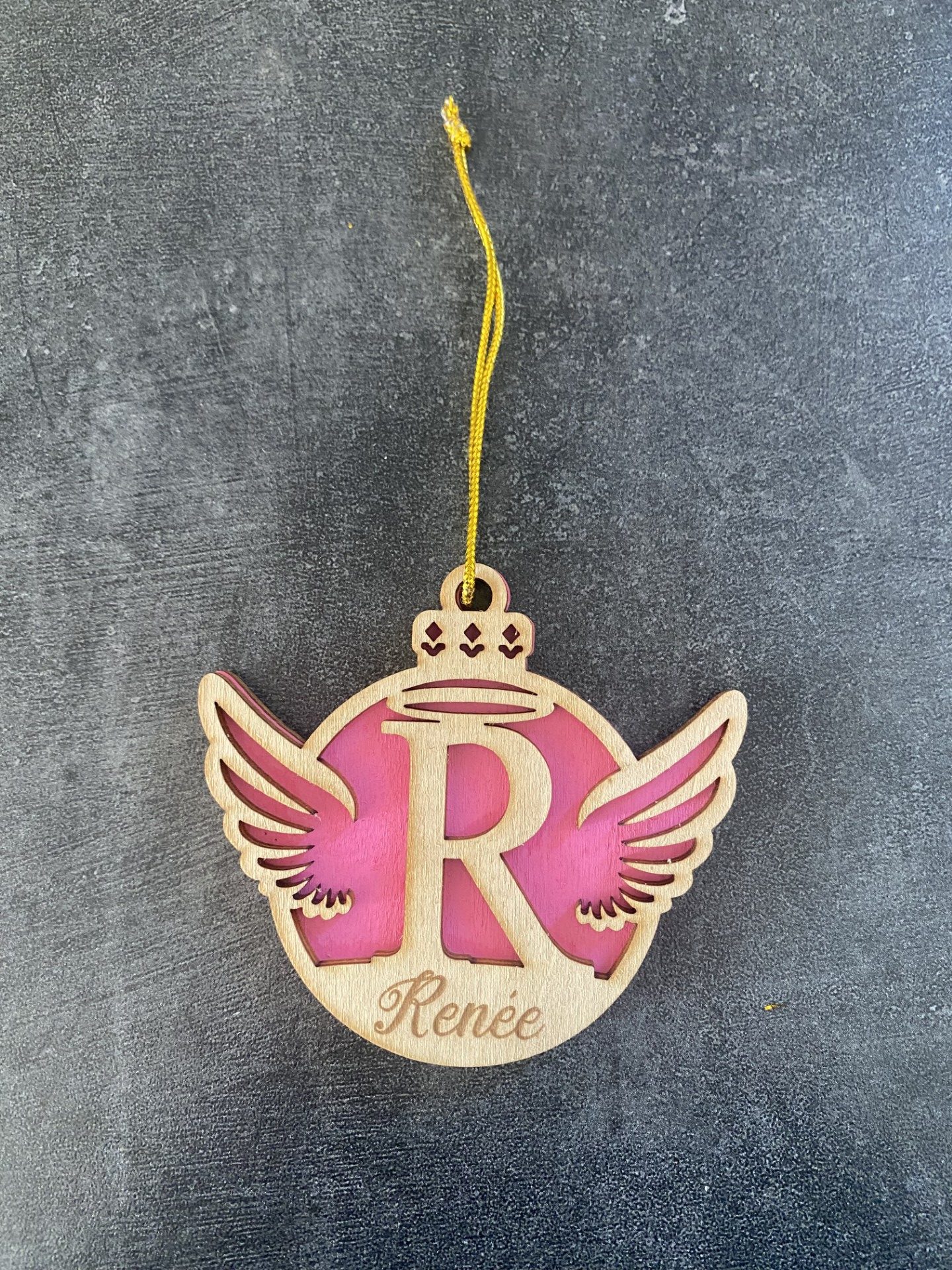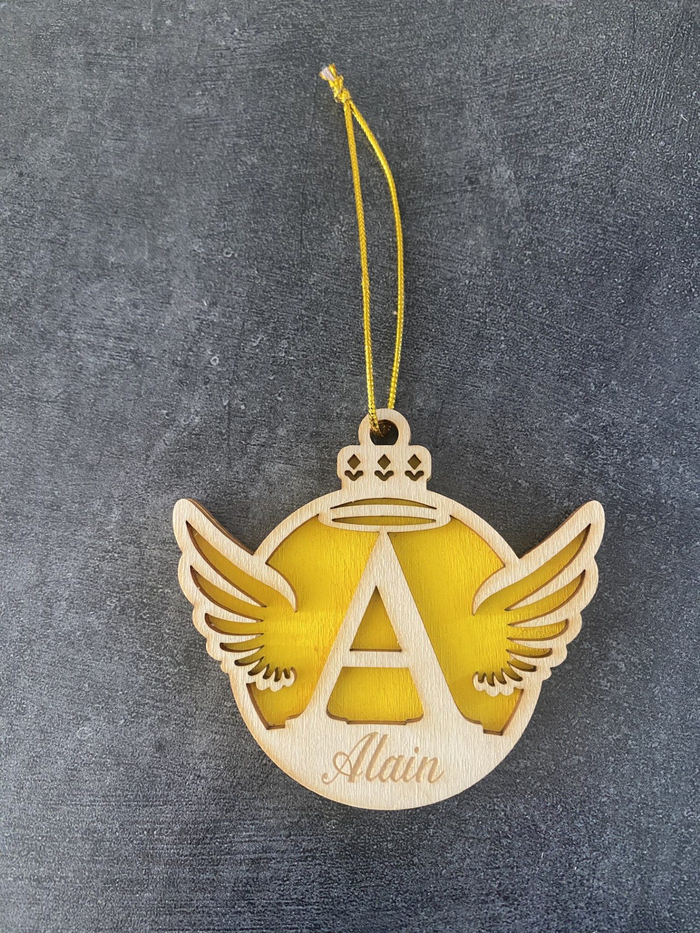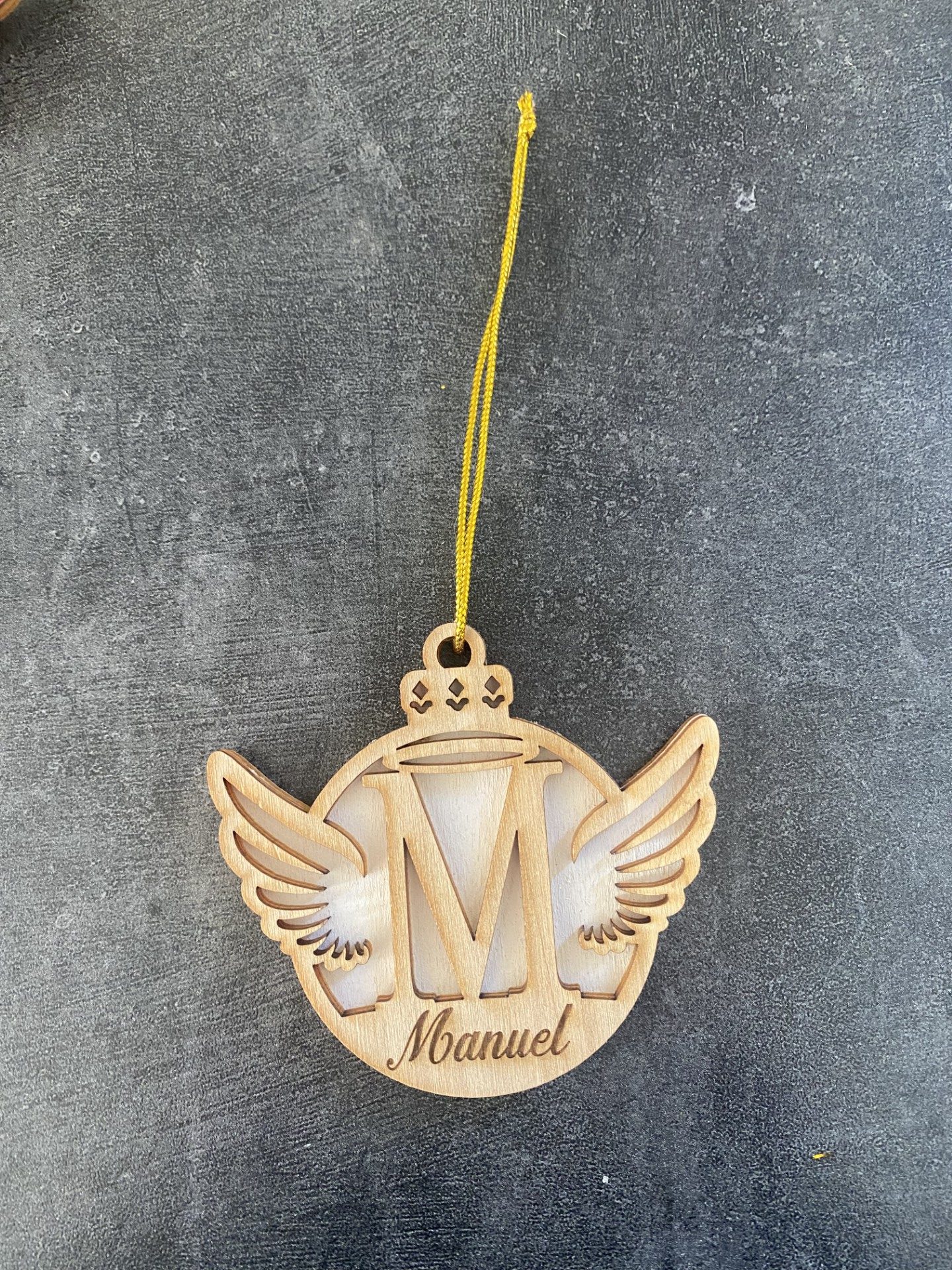 Un ange parti trop tôt… Une jolie boule avec son initiale en gros et son prénom gravé.