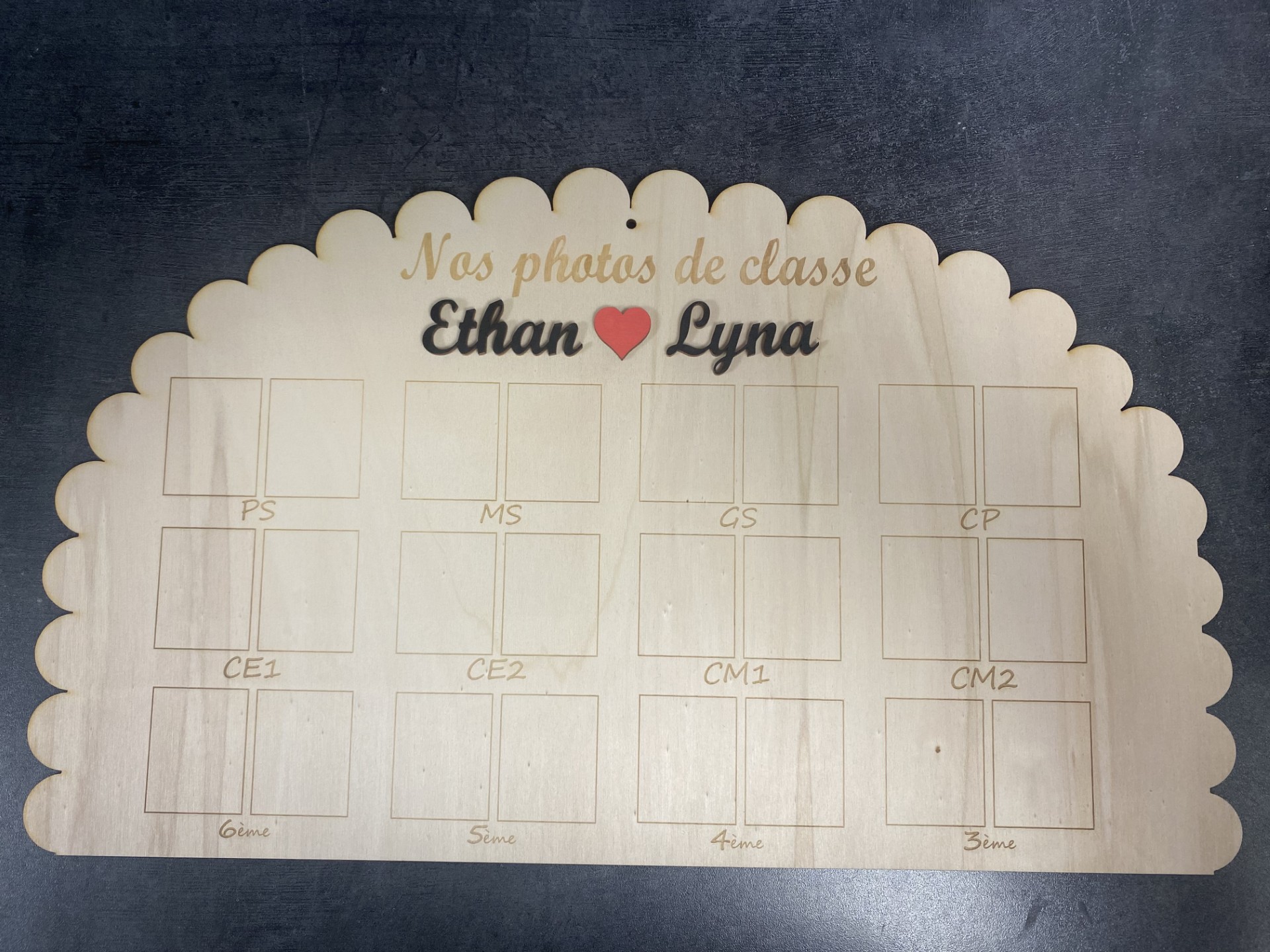 Un cadre en bois pour y coller les photos d’identité de l’école.