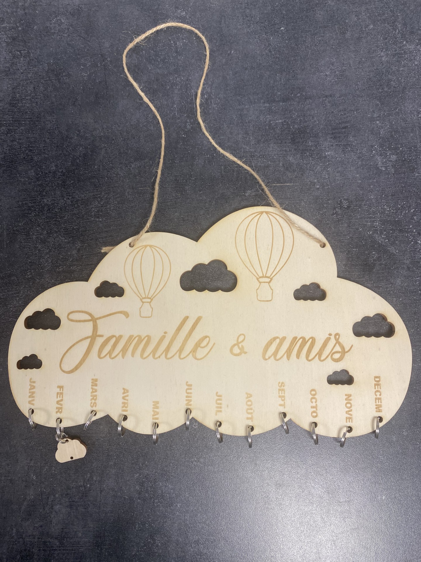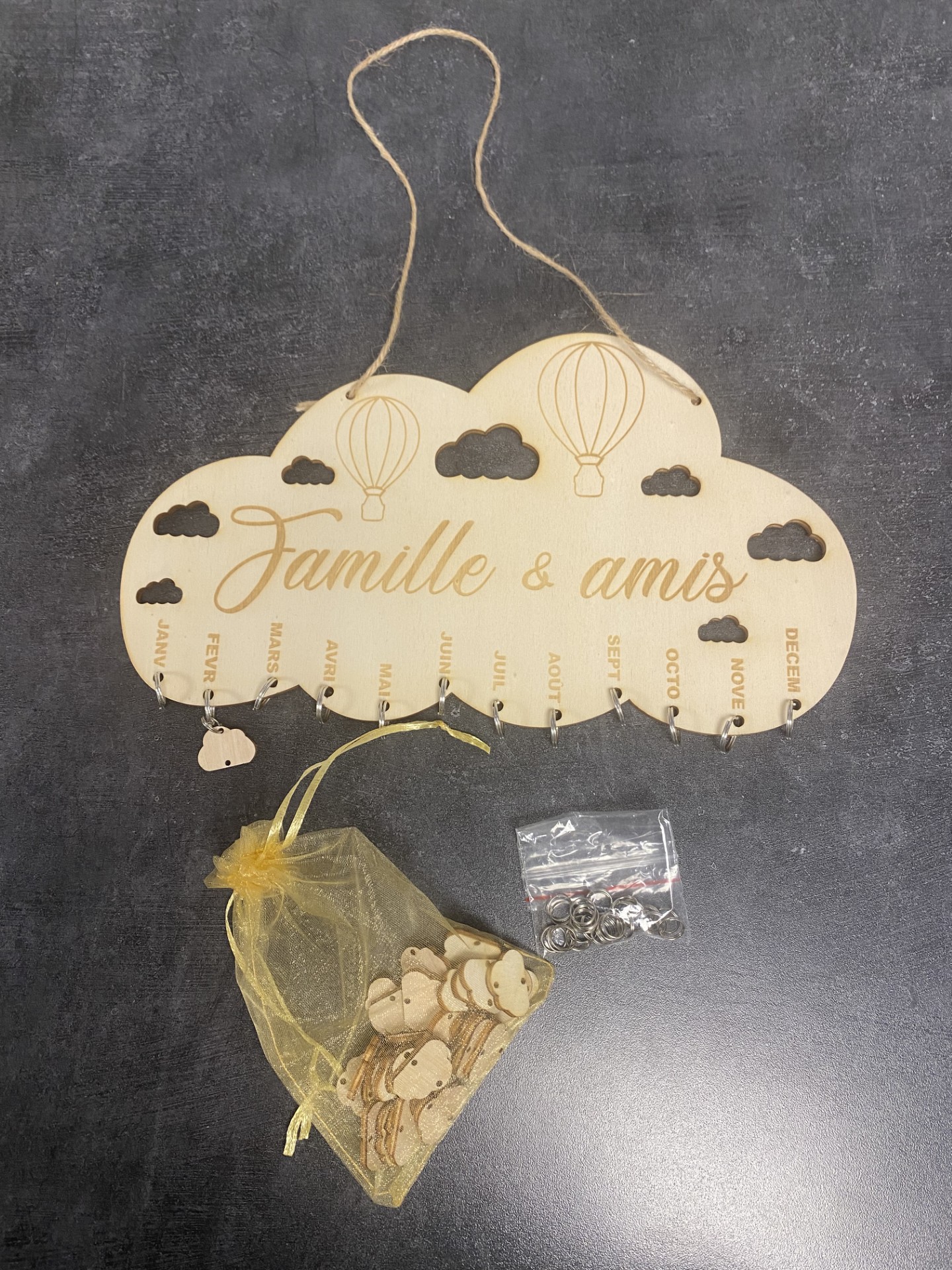 Vous avez juste à noter sur chaque nuage le prénom et le numéro de la personne de votre choix, puis l’accrocher en dessous du mois d’anniversaire
