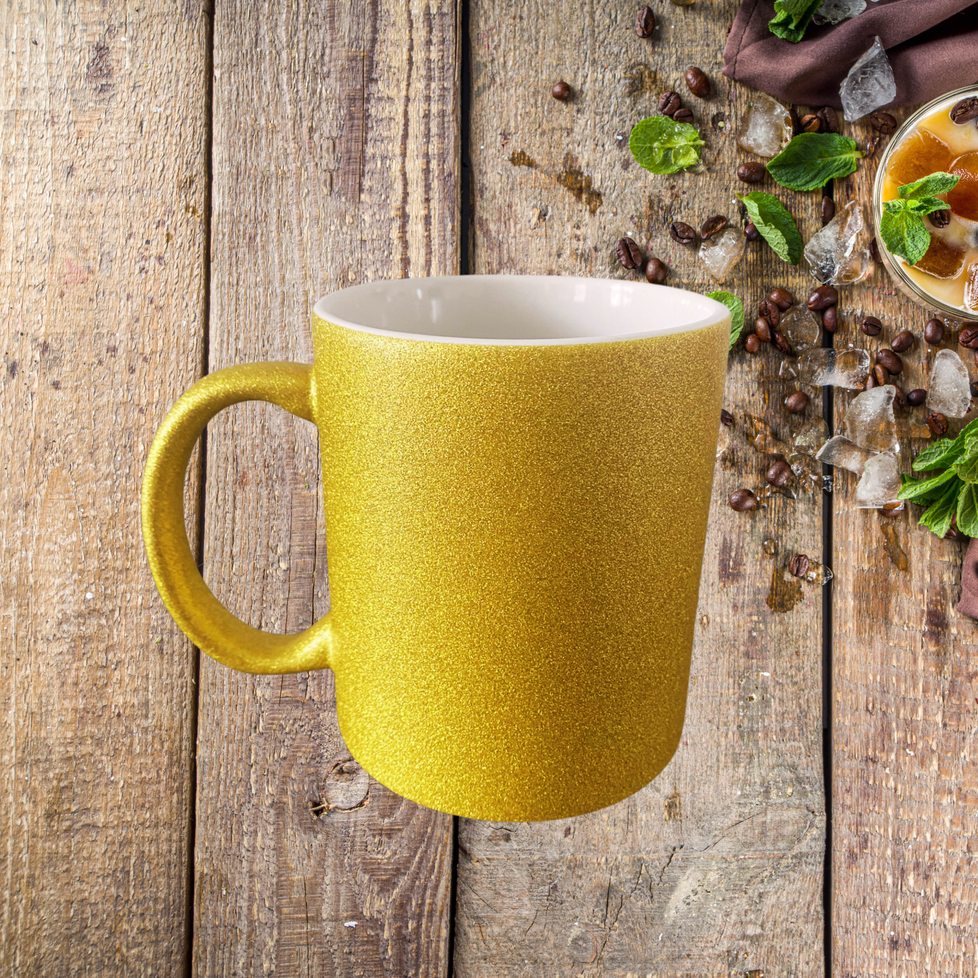 Mug à paillette Or sur lequel vous pouvez ajouter votre image ou texte.