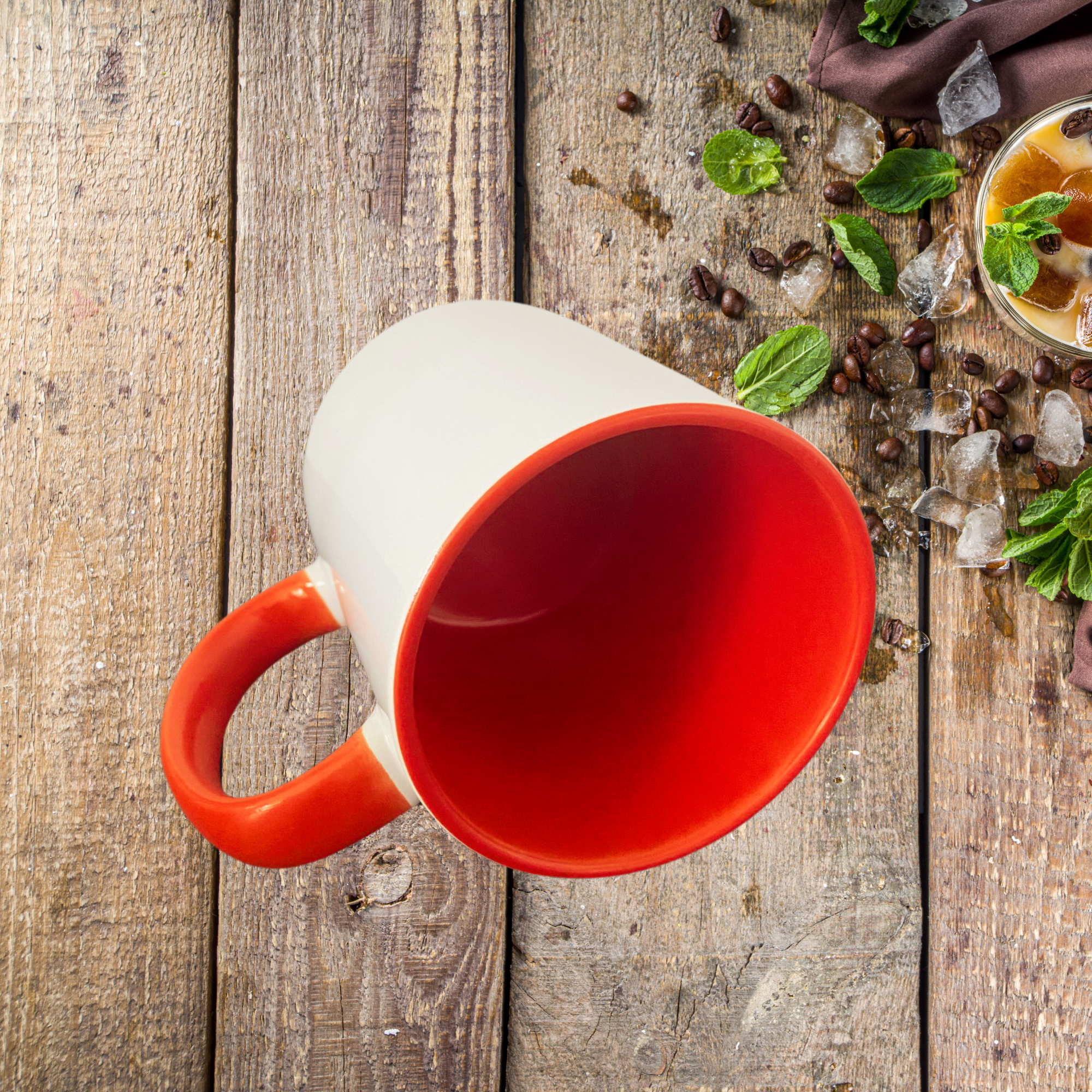 Mug intérieur & anse rouge sur lequel vous pouvez ajouter votre photo, image ou texte.