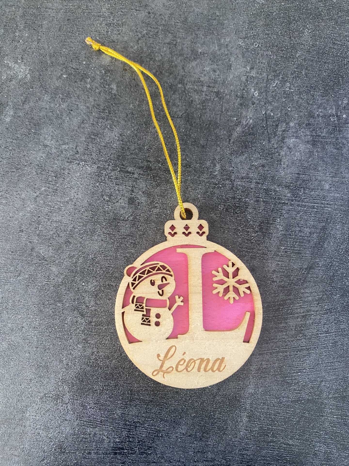 Boule avec l’initiale de votre prénom en gros et vous pouvez graver votre prénom