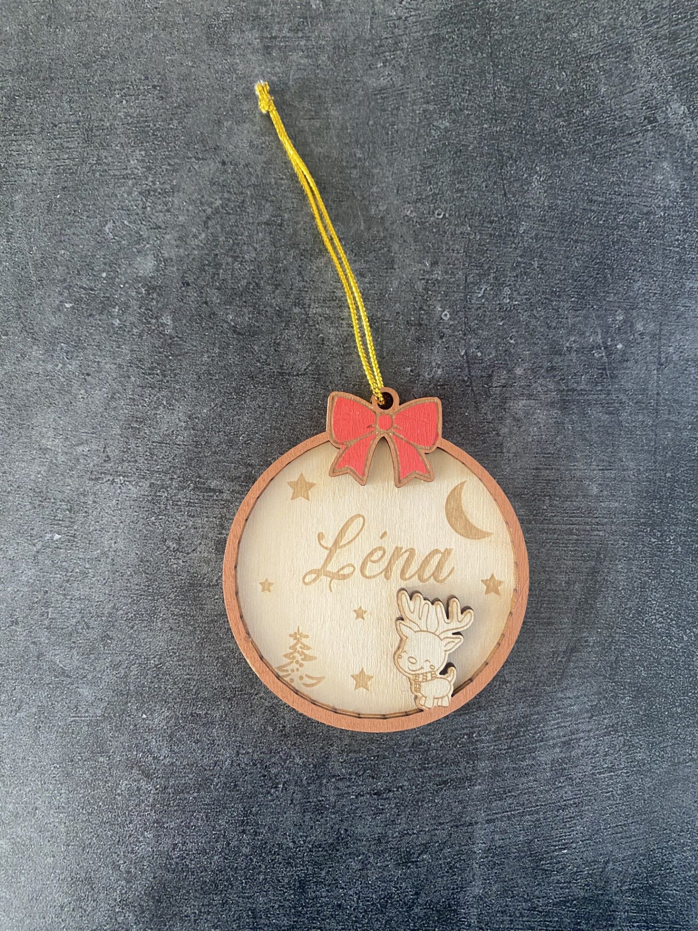 Une jolie boule Renne avec le prénom de la personne de votre choix