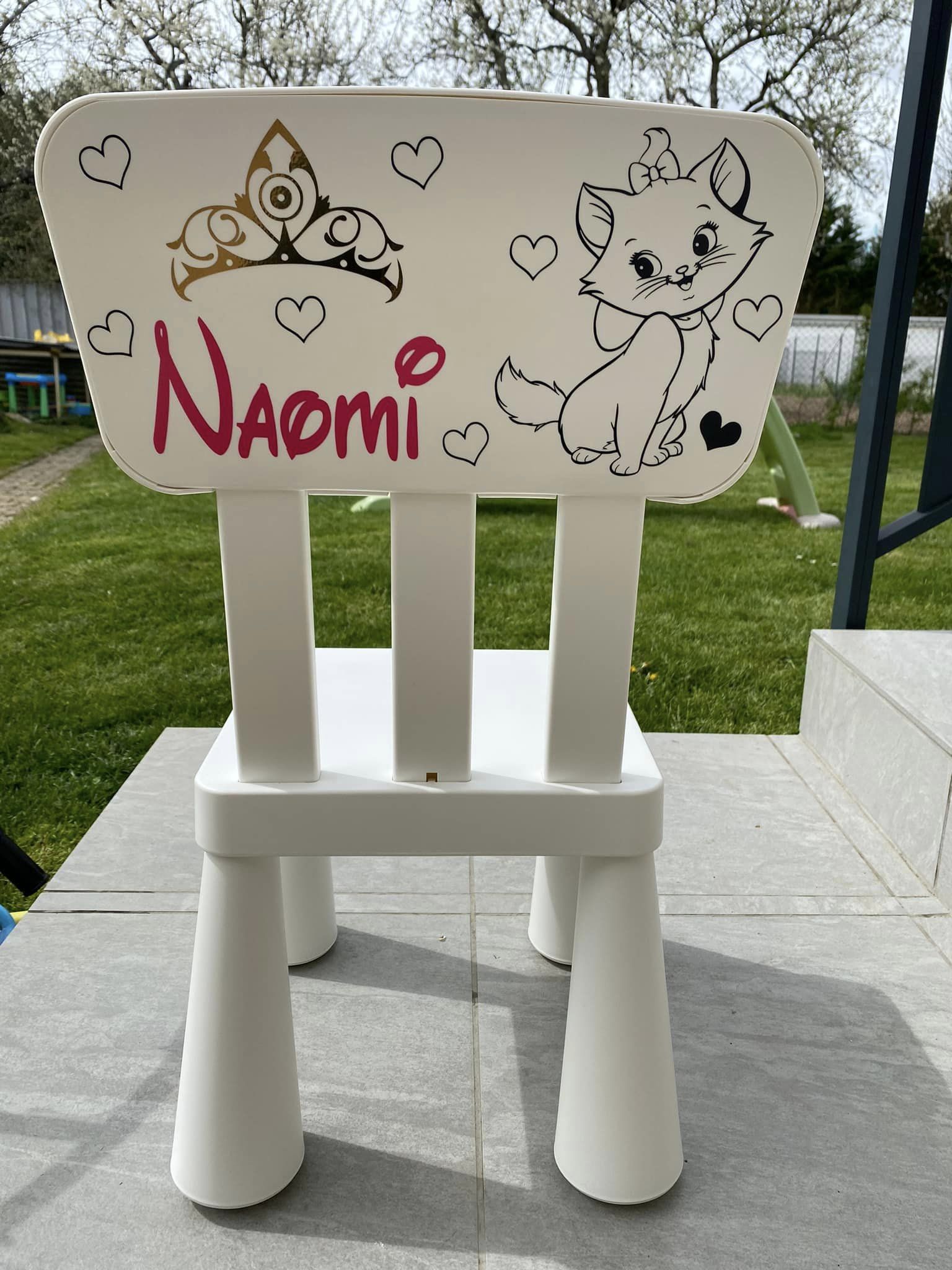 Vous pouvez personnaliser le dos de la chaise avec le prénom et un dessin.