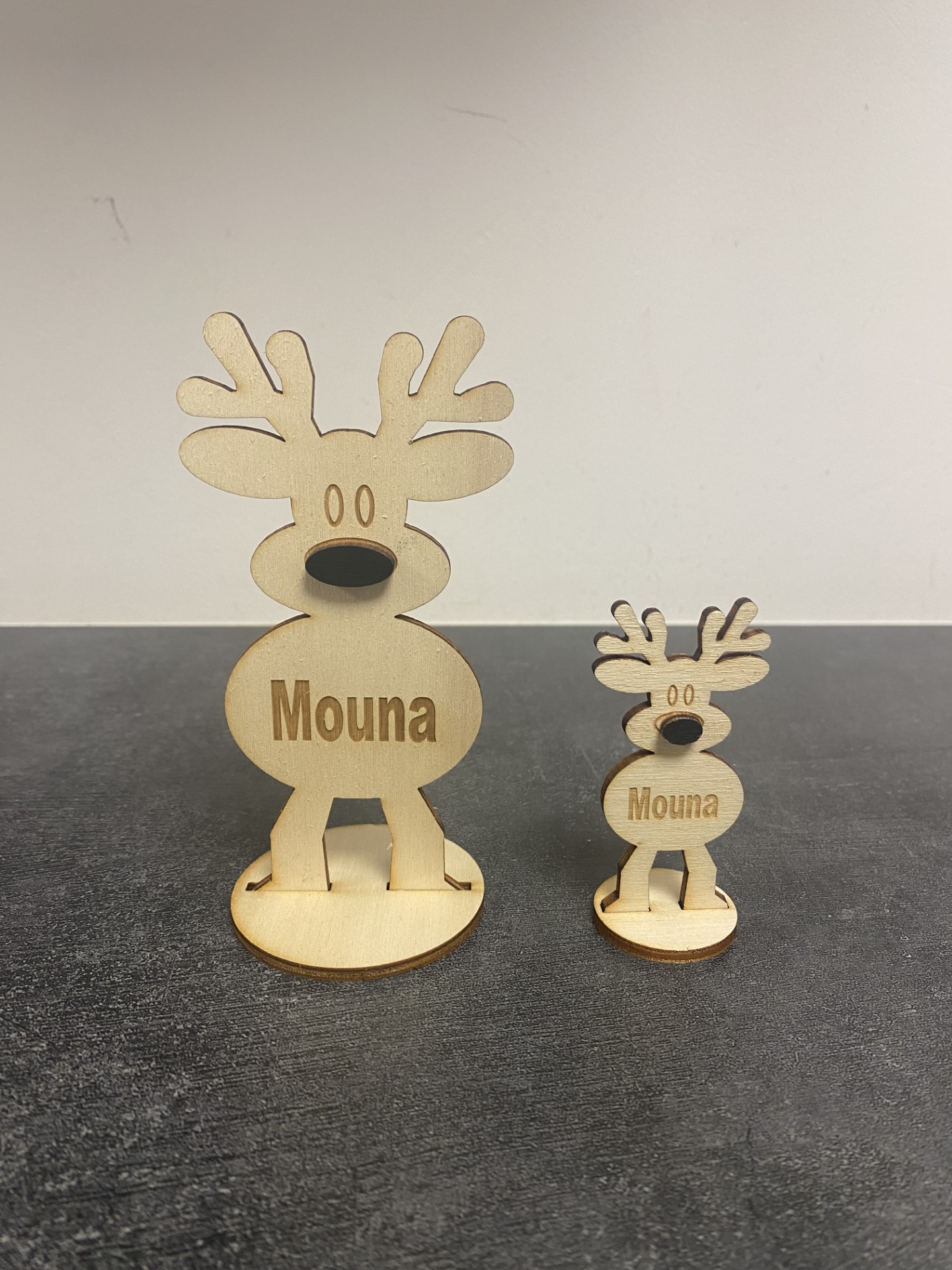 Une jolie décoration en bois en forme de cerf avec le prénom gravé
