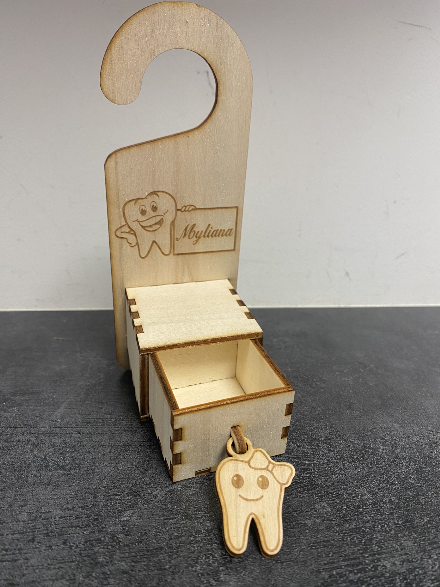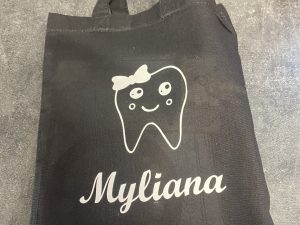 Le sac, le rangement de dent, l’accroche-porte marqué au prénom de votre enfant.