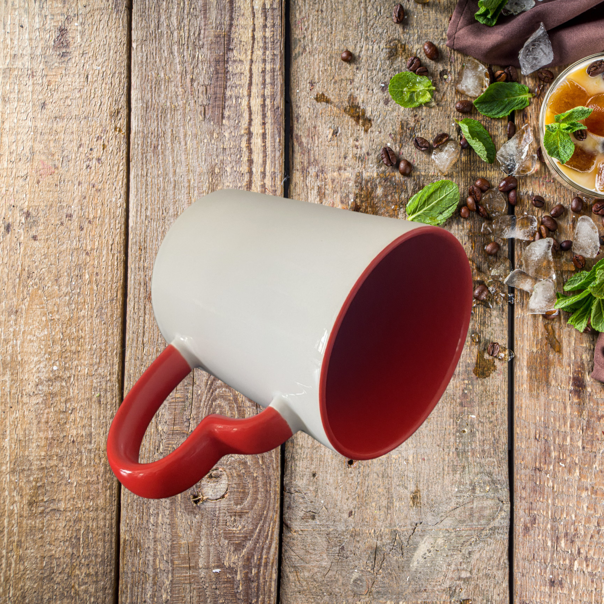 Mug intérieur & anse en forme de cœur rouge sur lequel vous pouvez ajouter votre photo, image ou texte.