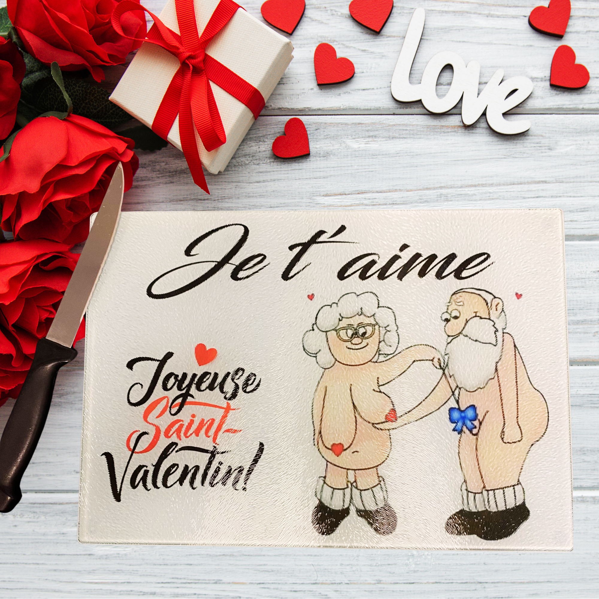 Une jolie planche de découpe pour sublimer la cuisine de votre amour avec un peu d’humour.