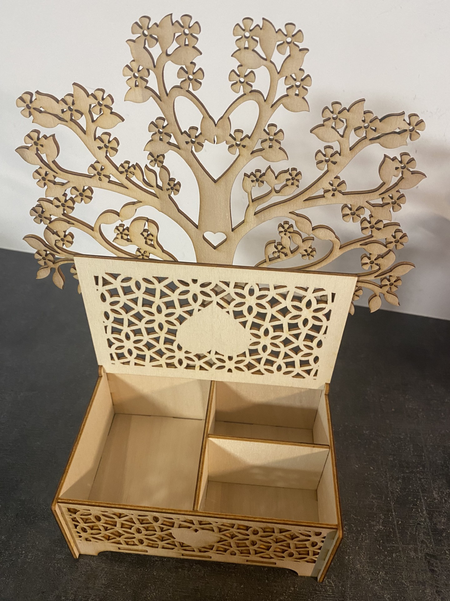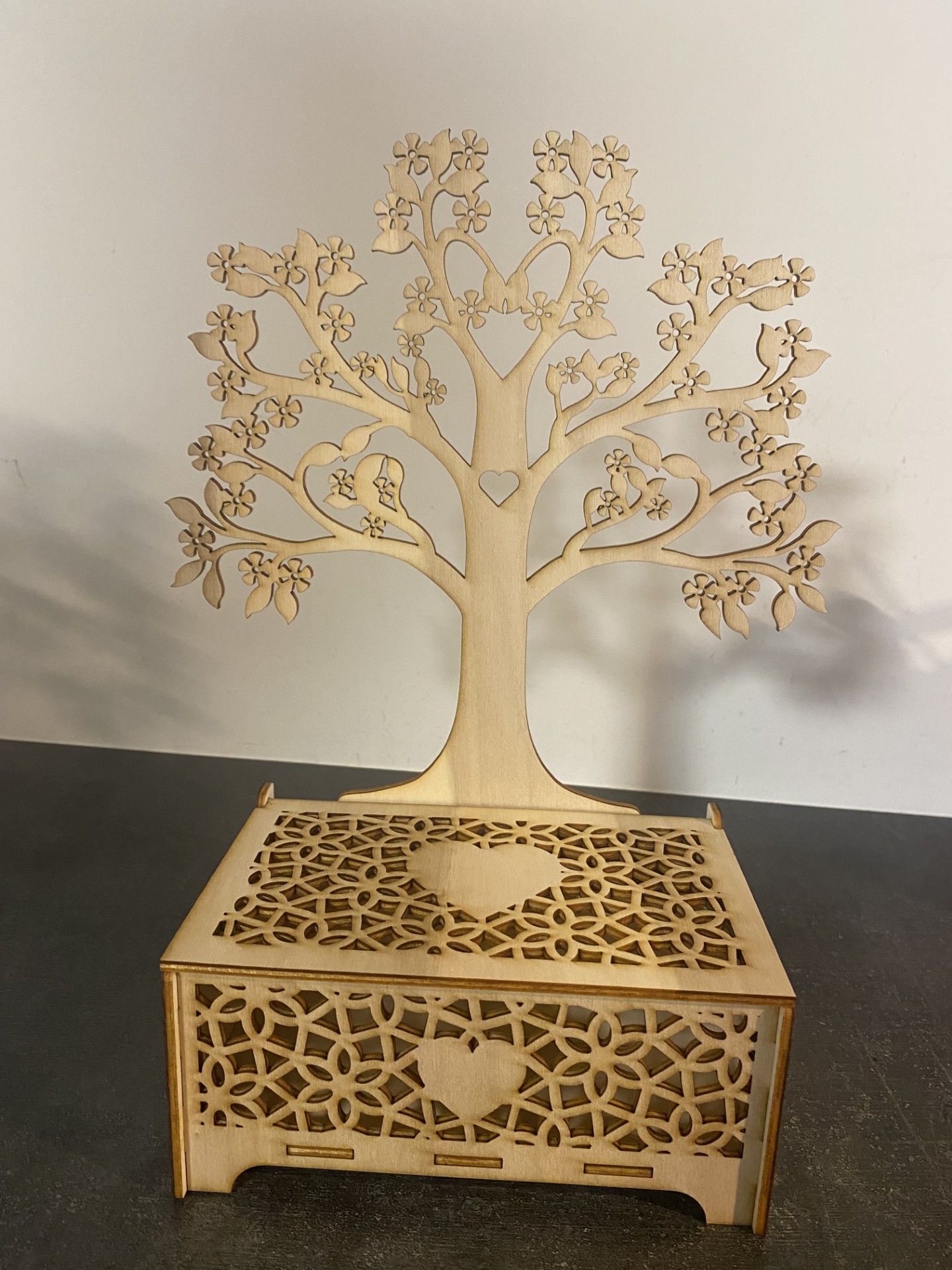 Une jolie boîte à bijoux totalement unique grâce au choix de votre gravure dans les deux cœurs.