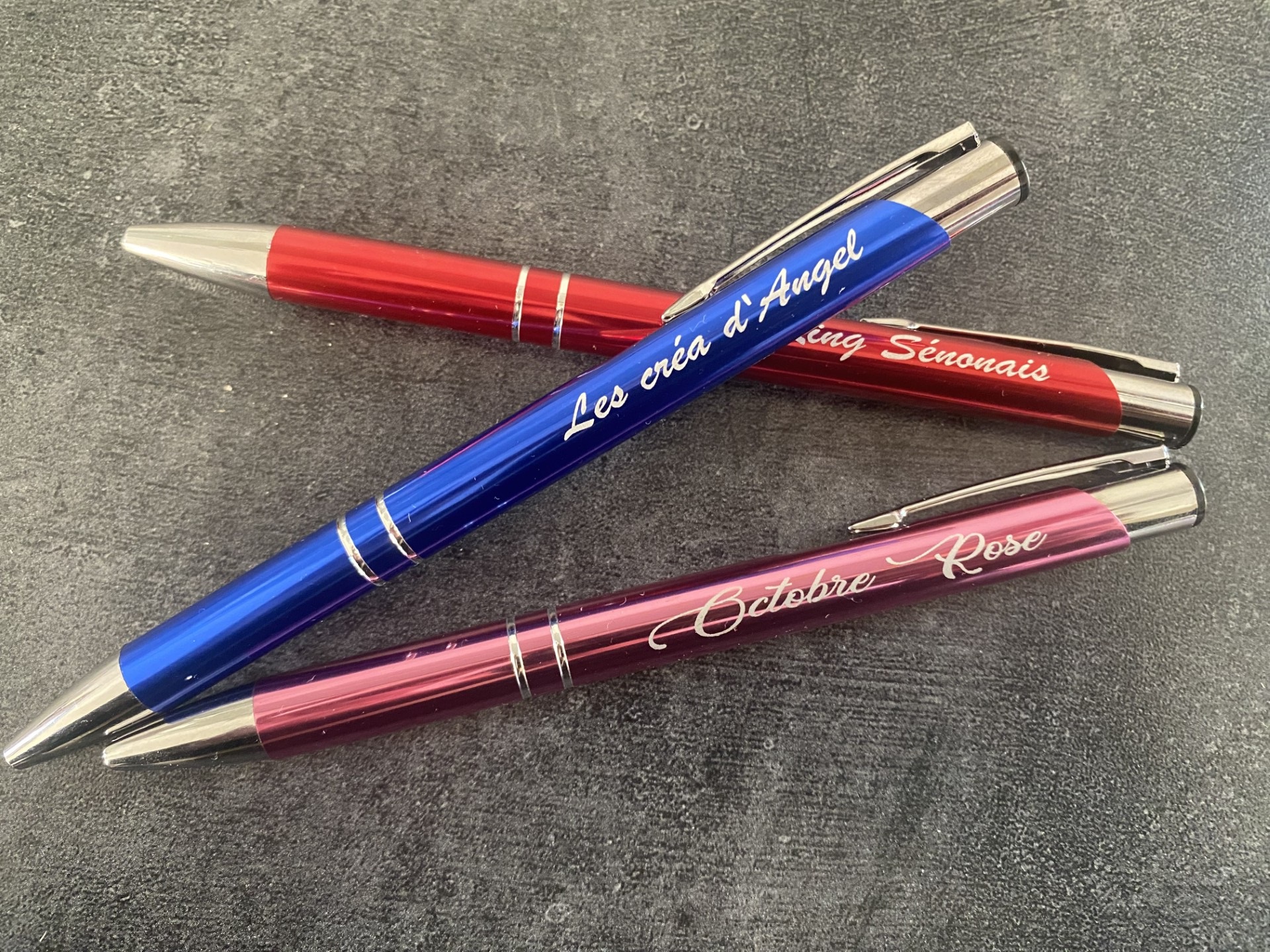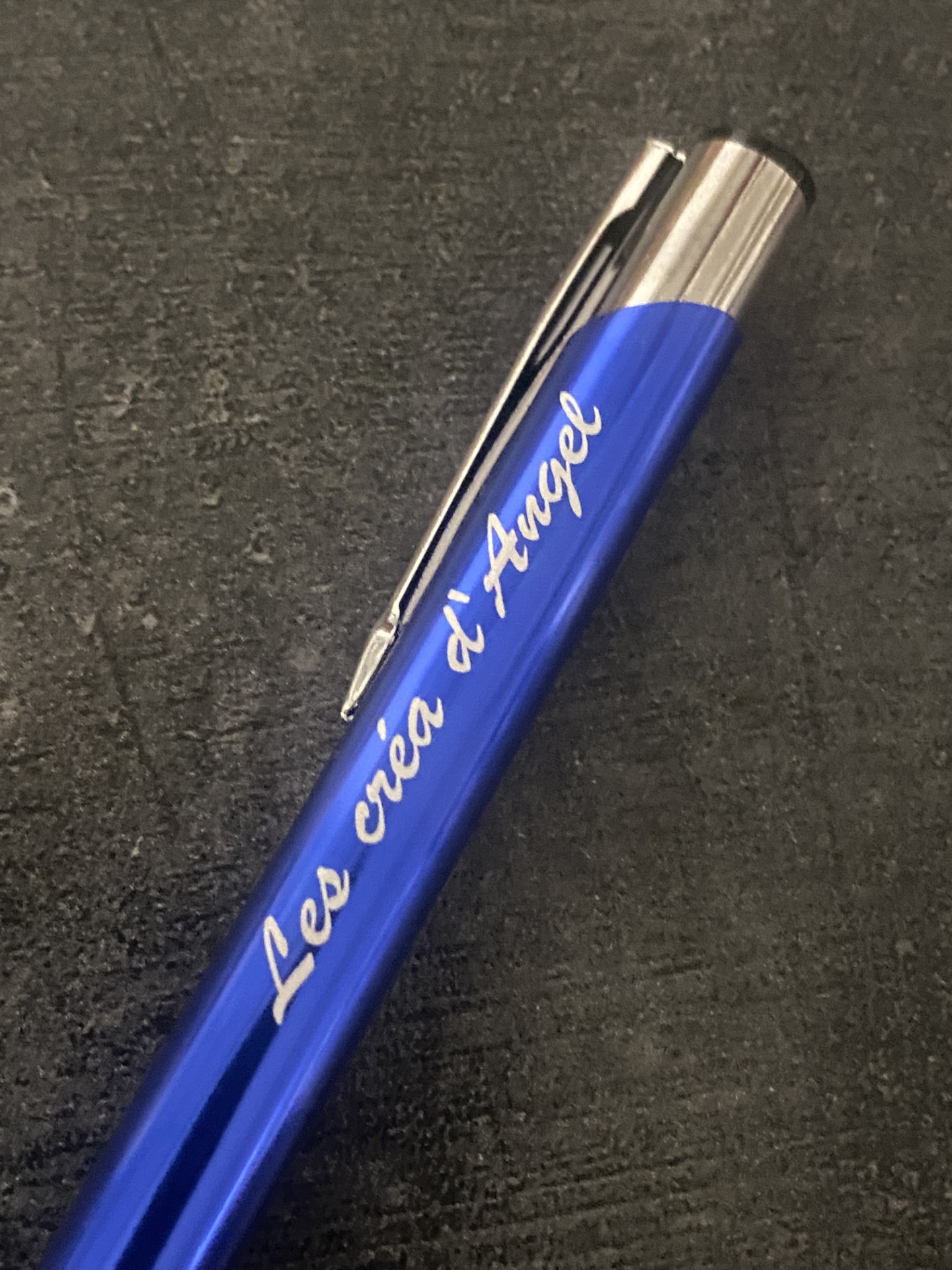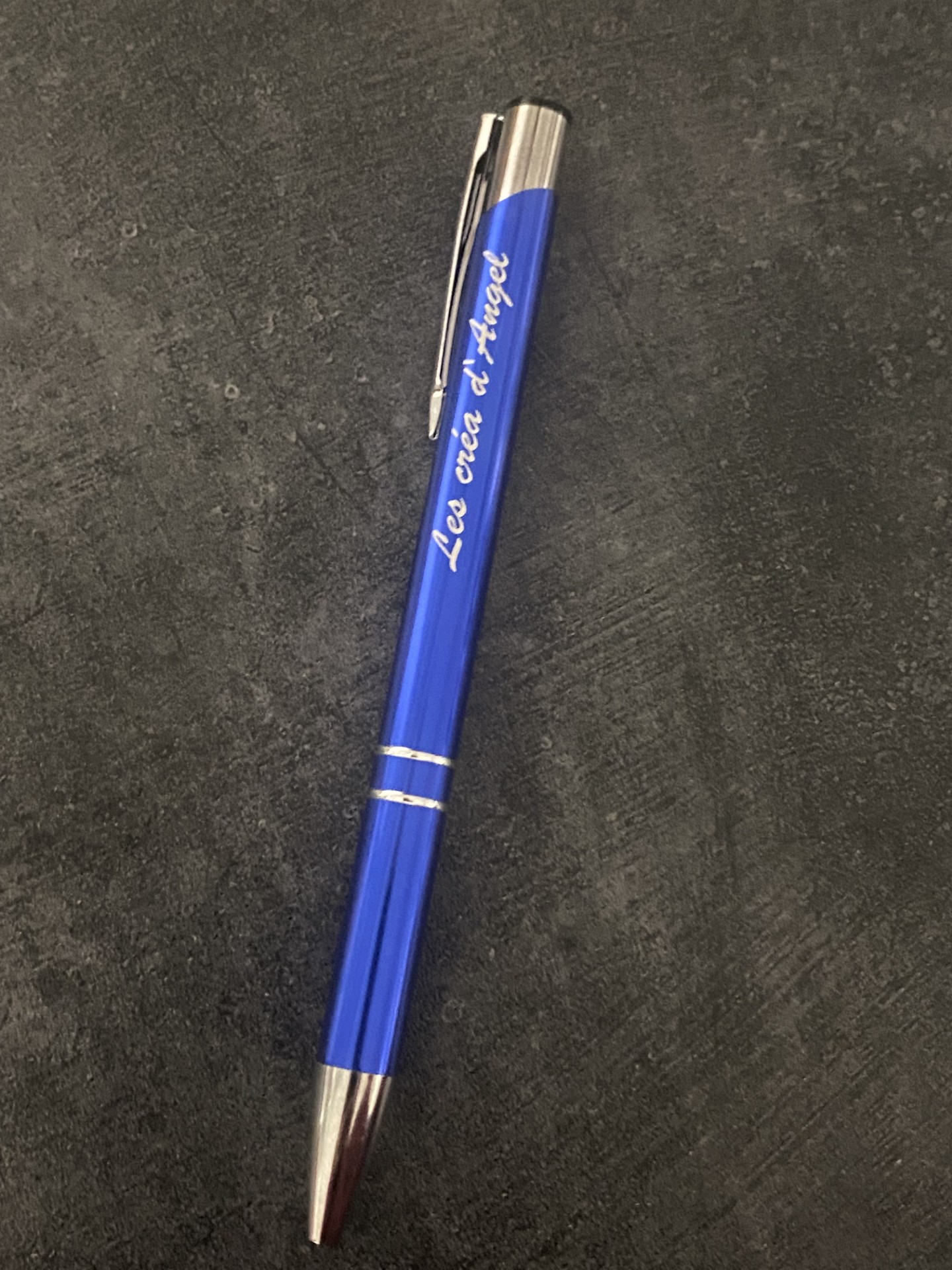 Un stylo en métal de couleur bleu avec une jolie gravure de votre choix.