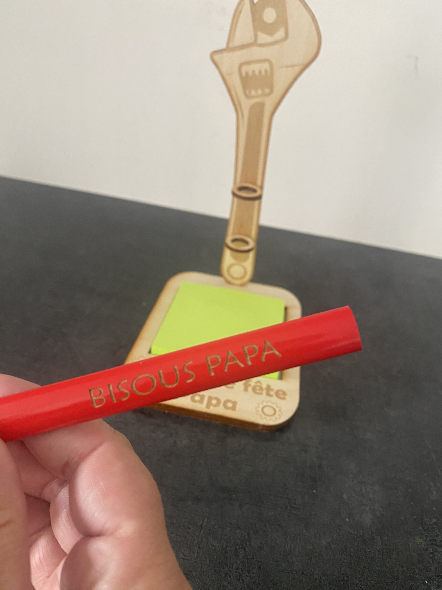 Le crayon est gravé avec votre propre phrase ainsi que le support