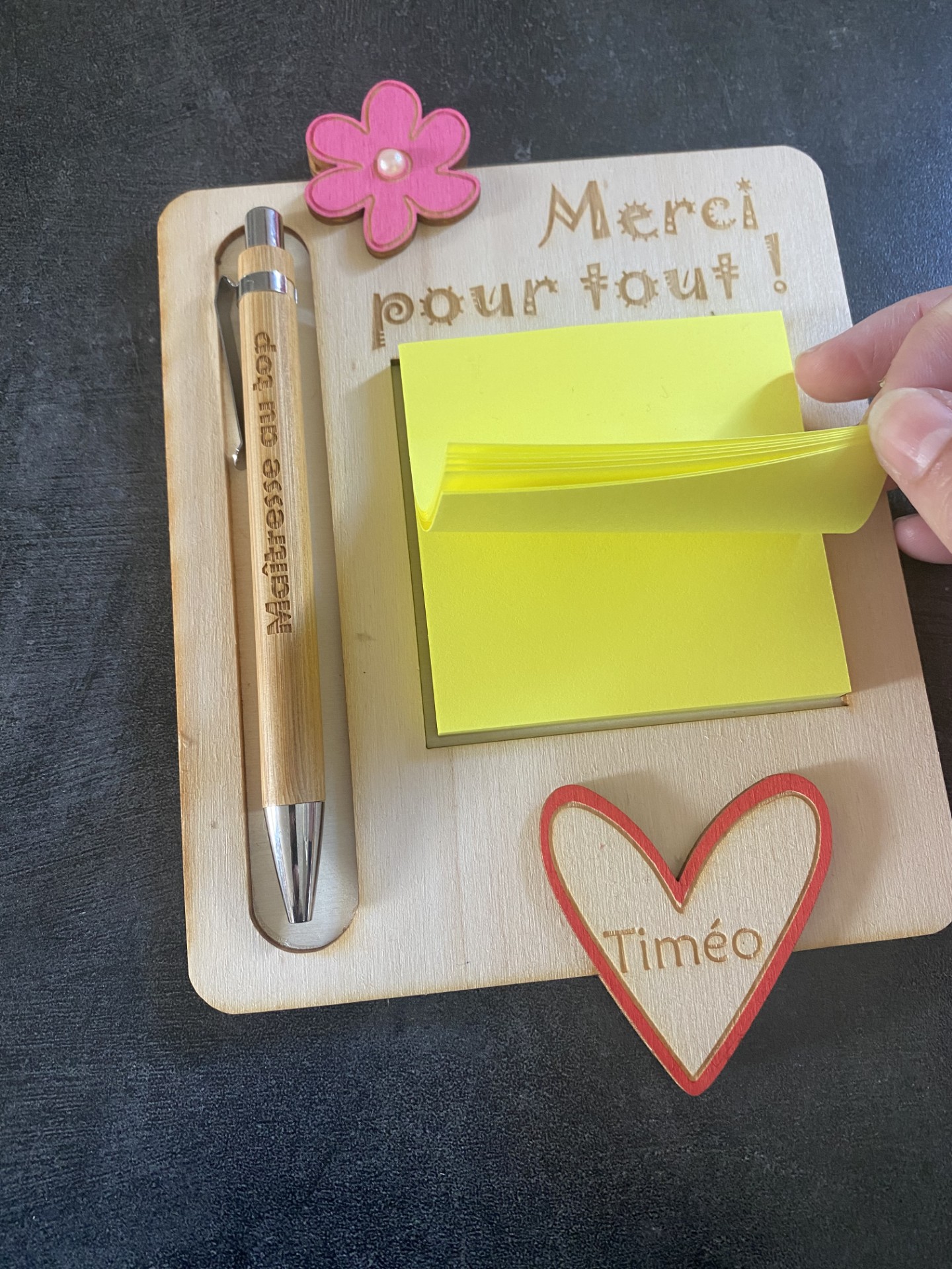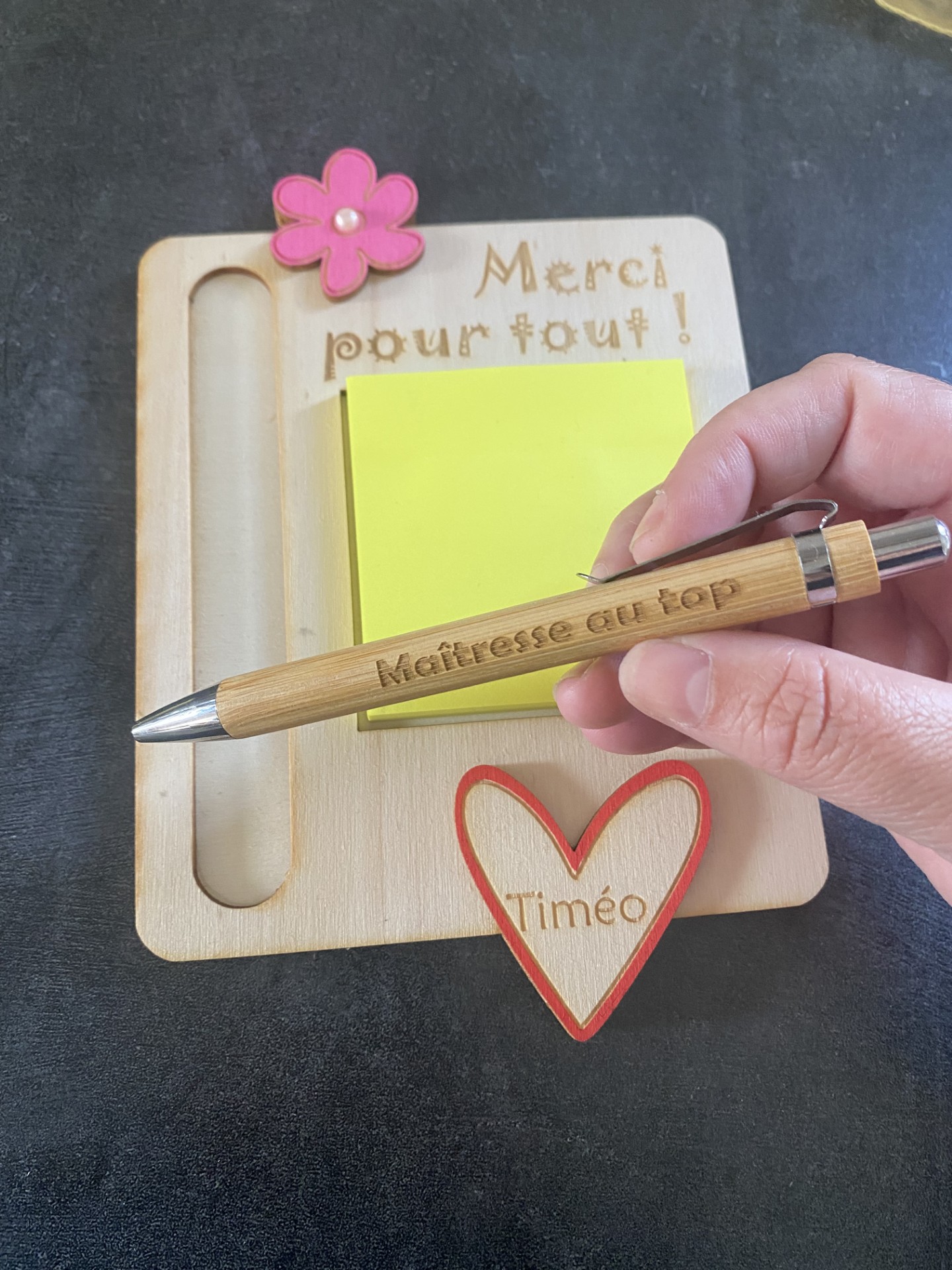 Vous avez la possibilité de changer le texte sur le support ainsi que sur le stylo.