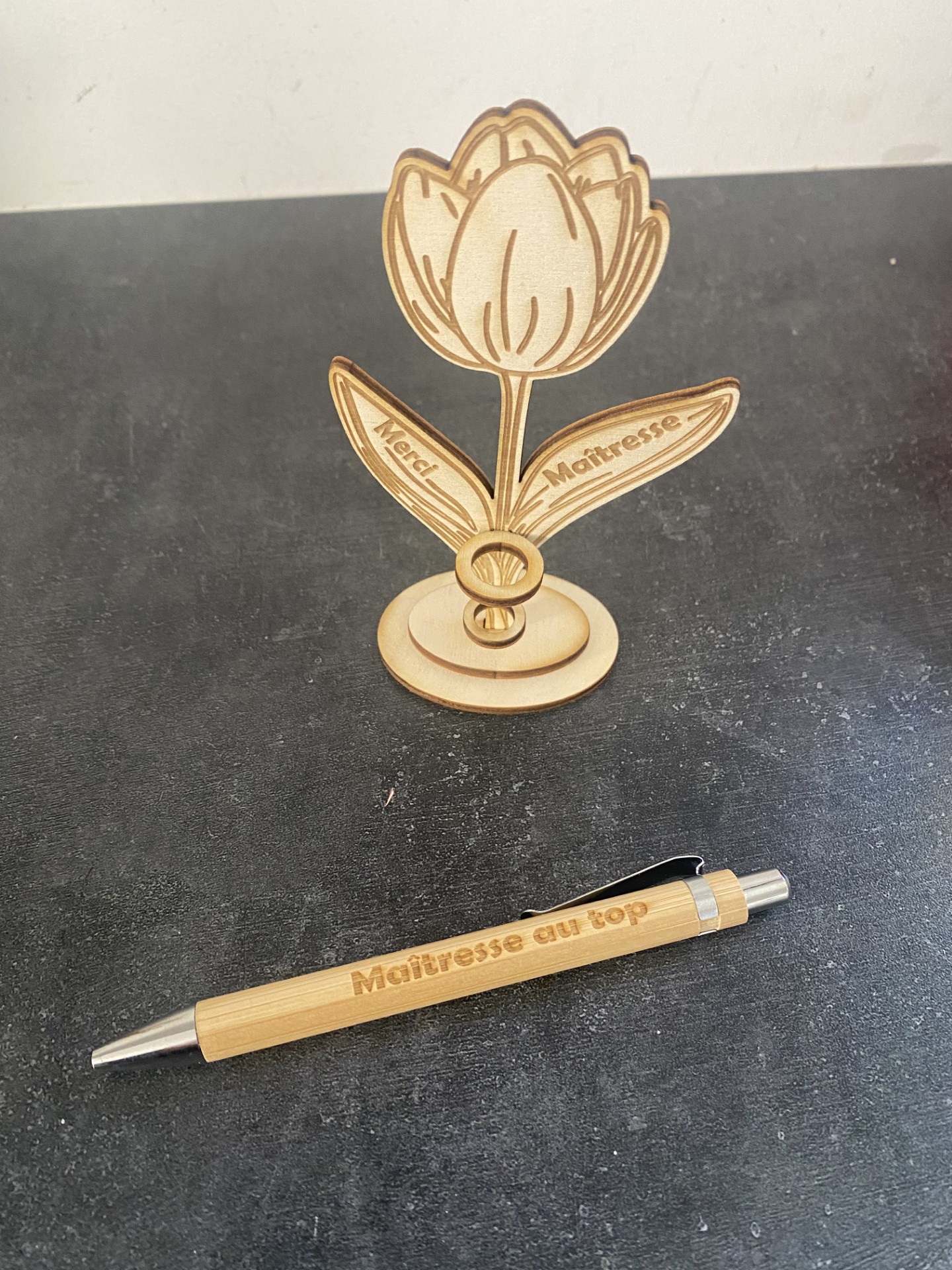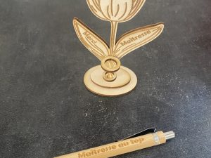 Vous pouvez personnaliser la tulipe, changer de mot à la place de « Merci maîtresse » (juste 2 mots).