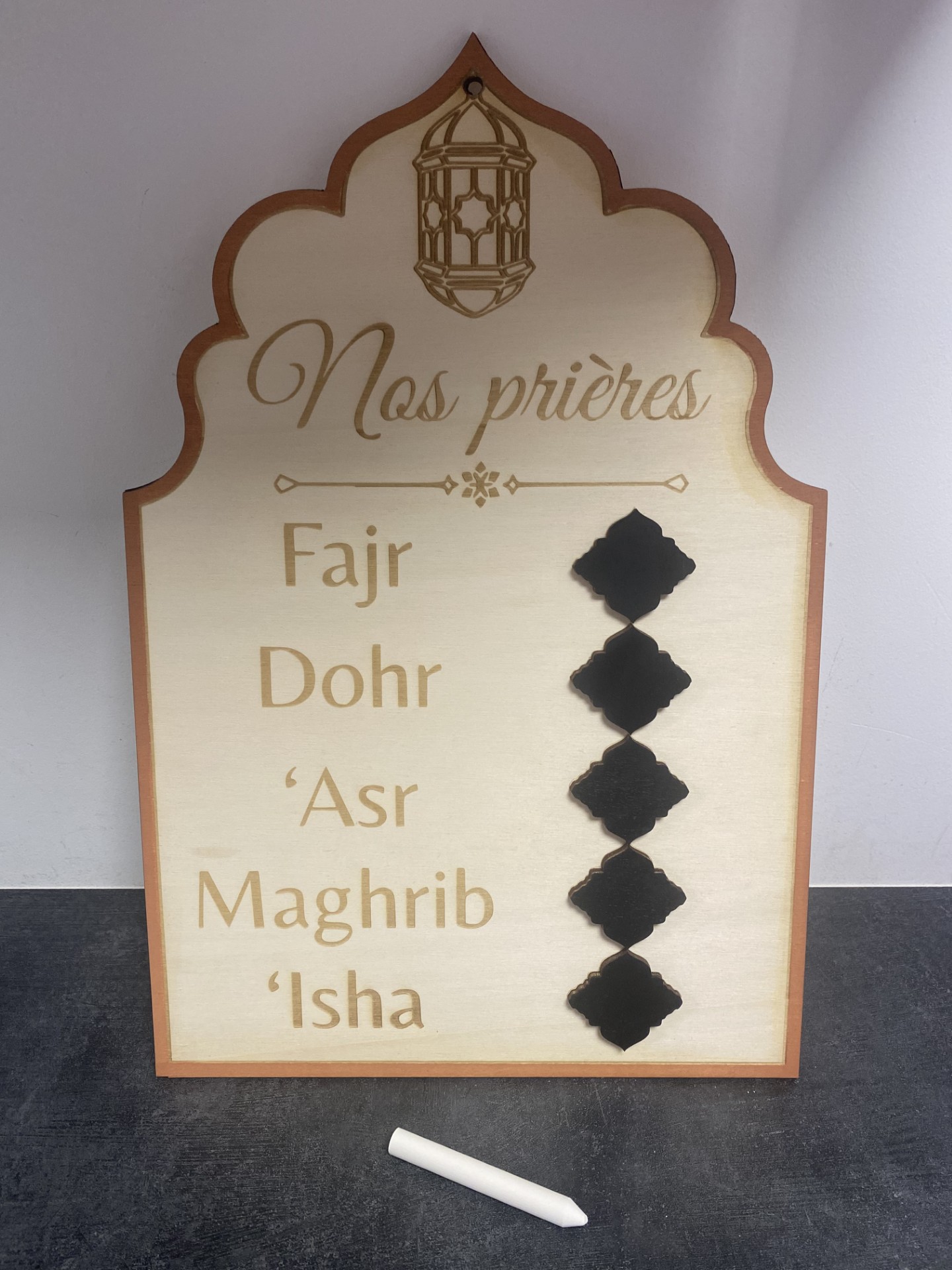 Un joli tableau en bois pour les heures de prière